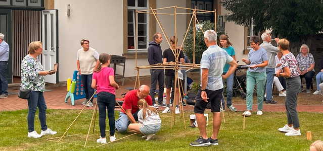 Bei einem gut besuchten Familiensonntag ging es in diesem Jahr um die Fähigkeit aus einfachen Stäben etwas zu bauen. Besonders die Kinder und Jugendlichen entwickelten dort viel Geschick. Aber natürlich kam der gemeinsame Austausch und die Unterhaltung, wie auch das traditionelle Knobeln nicht zu kurz.