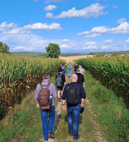 In diesem Jahr haben sich 11 KABer auf den Weg zu einer abwechslungsreichen Tour durch das Belmer Land gemacht. Unsere Stichworte waren Hoffest - Quelle - Garten! Durch Gretesch nach Darum, wo unsere erste Pause auf dem Schlehbaumhof beim Hoffest war, wo wir viel Wissenswertes von der Landwirtschaft und den auf dem Hof erzeugten Produkten erfahren konnten. Weiter ging es in einem weiten Bogen um den Halterner Berg zu der offenen Quelle an der Wellenstraße. Den Abschluss hatten die Organisatoren Günter und Christian bei Familie Alber im Garten vorbereitet, wo wir noch einige Stunden gemütlich beisammen saßen.